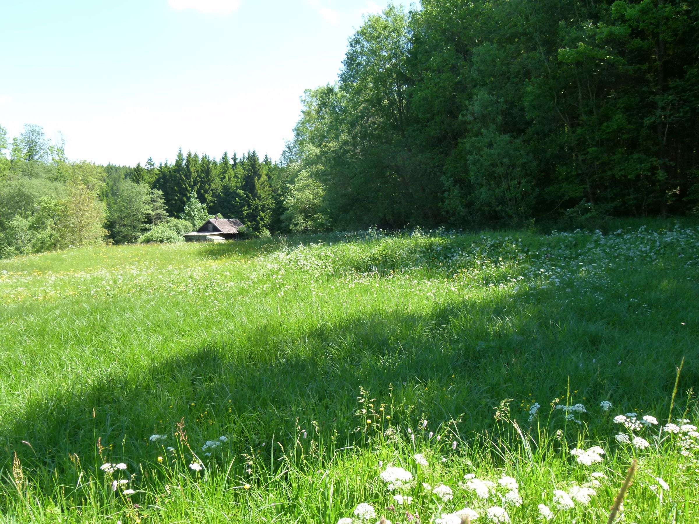 In den Wiesenbereichen findet sich feuchter und magerer Boden und die Vegetation ist entsprechend.: Sumpfdotterblume, Geflecktes Knabenkraut, Blutströpfchen, Teufelskralle, Campanula- und Lichtnelkenarten.
