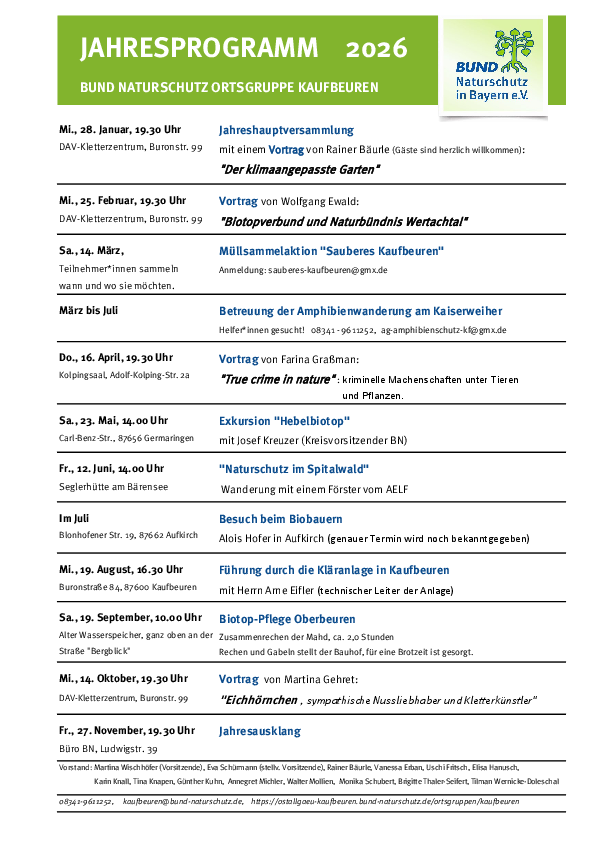 Unsere aktuellen Jahresprogramme mit spannenden Aktionen, Vorträgen und Exkursionen findest Du unter folgenden Links: