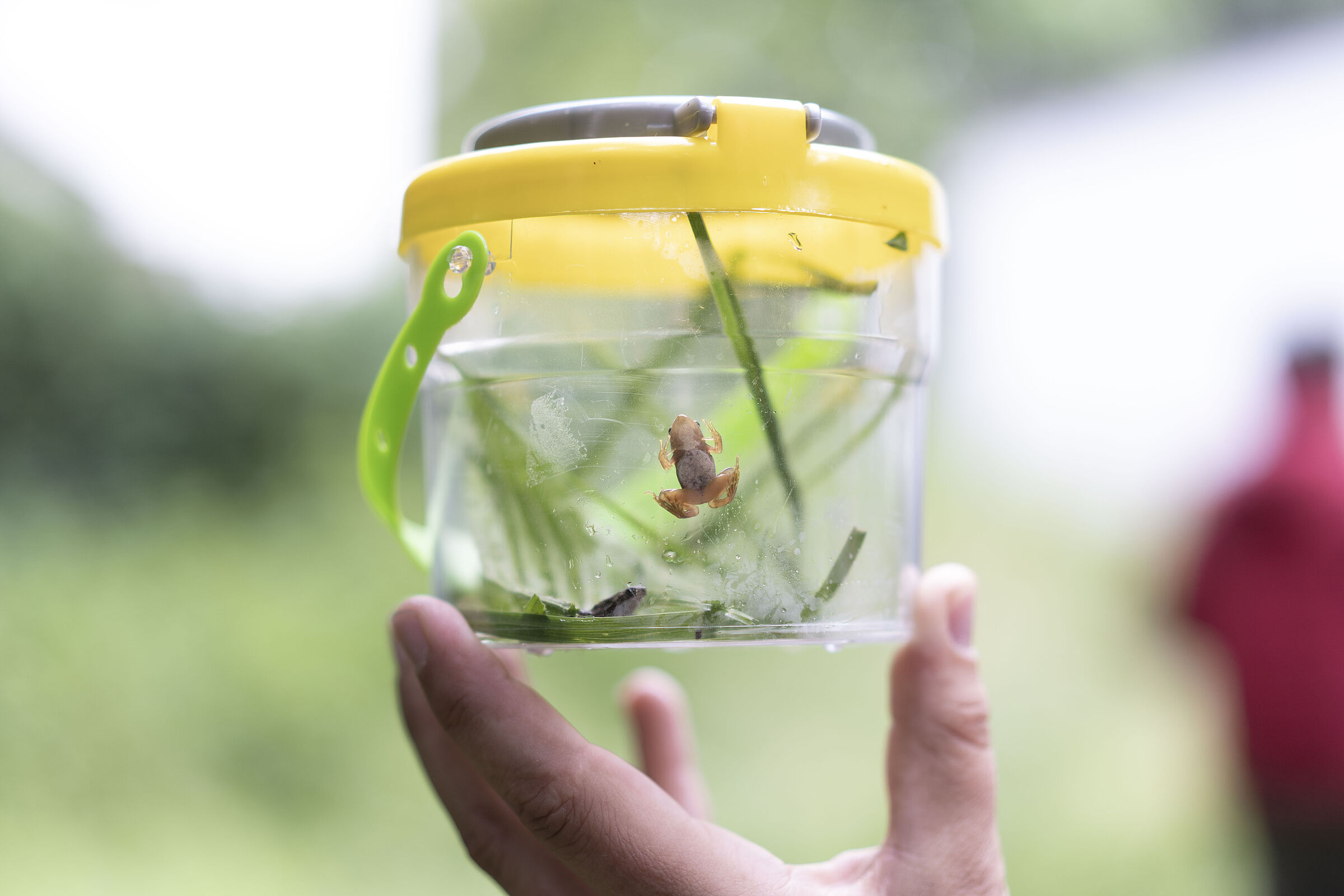 Die vielen „Hüpferlinge“, die sich im Juni und Juli aus dem Wasser aufmachten in die umliegenden Wälder und Wiesen, wurden durch einen Zaun rund um den Weiher aufgehalten und aufgesammelt. So wurden dieses Jahr fast keine der kleinen Tiere auf den umliegenden Straßen überfahren. Und – was besonders schön ist: Mehr als 300 Schüler*innen mit Lehrpersonal halfen begeistert mit und freuen sich schon auf das kommende Jahr!
