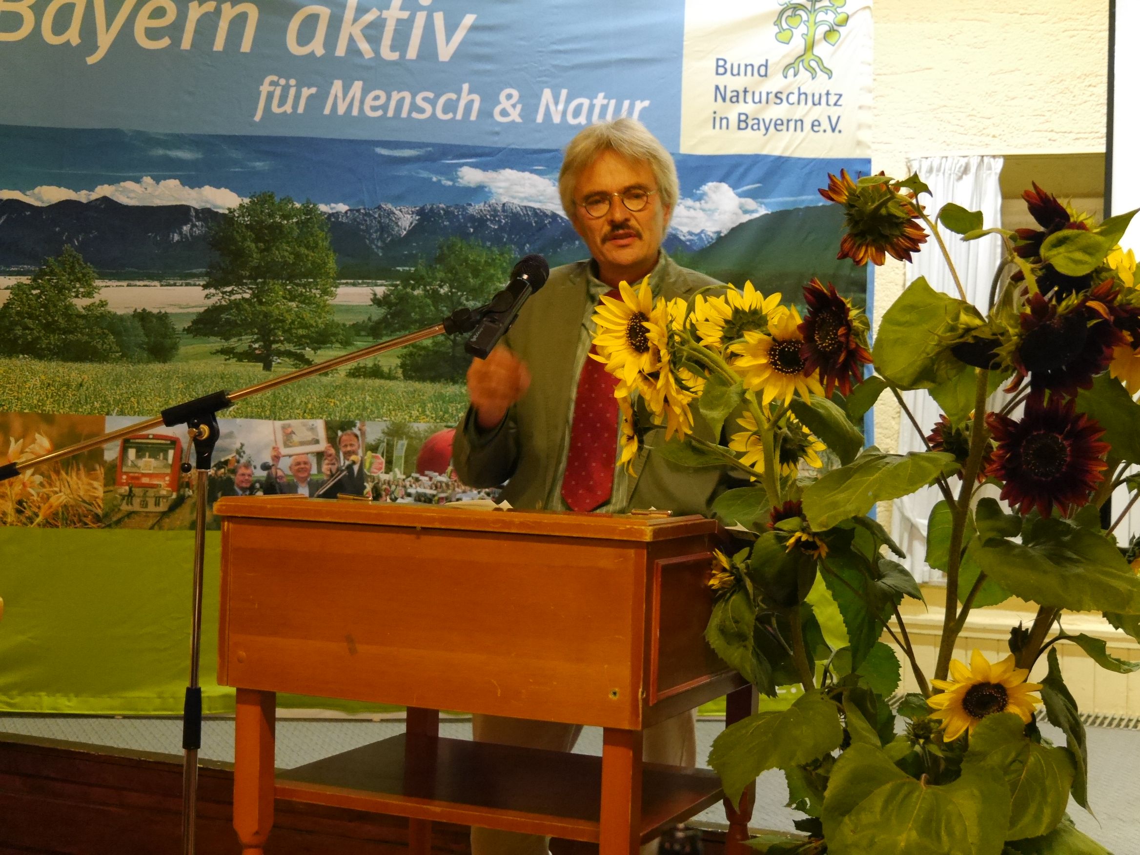Eröffnet wurde der Abend von Josef Kreuzer, dem Vorsitzenden der BN-Kreisgruppe Ostallgäu-Kaufbeuren. Er erinnerte an Aktivitäten der Ortsgruppe – etwa an die legendären Bioweinproben – und schloss mit einem nachdenklich stimmenden Text von Hubert Weinzierl. Bürgermeister Leveringhaus würdigte in seinem Grußwort die wichtige Rolle, die der Bund Naturschutz im Gemeindeleben spielt.