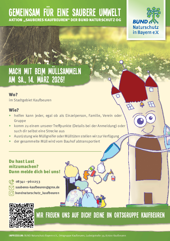 Wie in den vergangenen Jahren organisiert der Bund Naturschutz in Kaufbeuren wieder einen „Frühjahrsputz“ im Stadtgebiet.